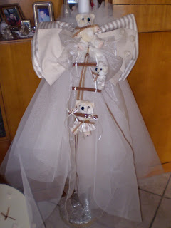 Η λαμπάδα με τούλια και διπλό φιόγκο, ένα ριγέ πίσω και έναν