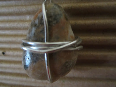 Μενταγιόν λοιπόν με βότσαλα, σύρμα και χάντρες, δίχως άλλα σχόλια.